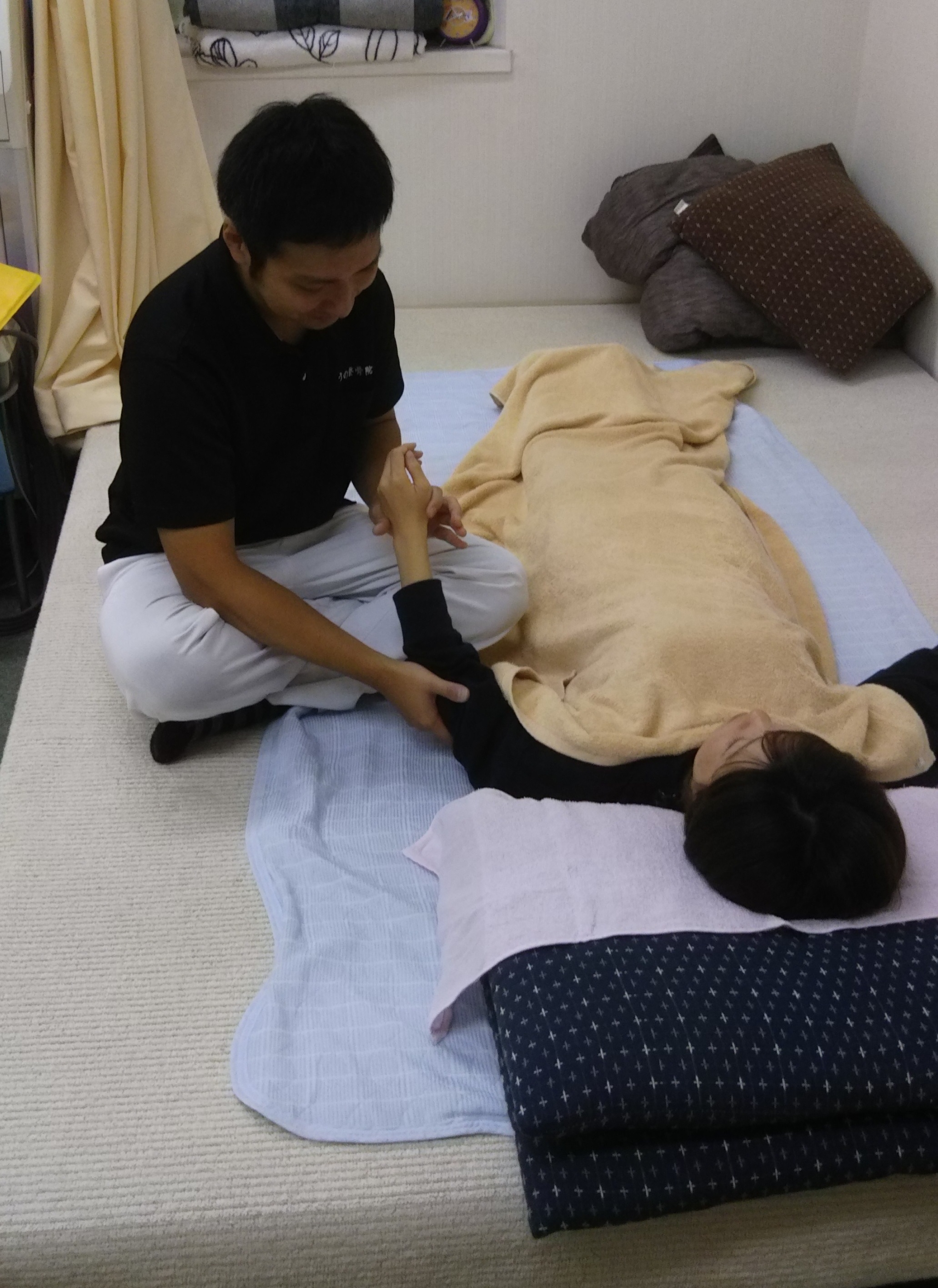 患者様はただ寝ているだけでよく、こちらで緩やかに関節や筋肉を動かすだけです。