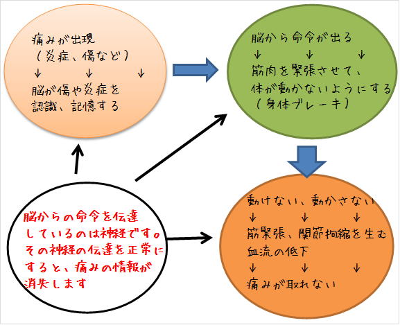 痛みがあると脳は神経を通じて身体を動かさないように命令を出します。